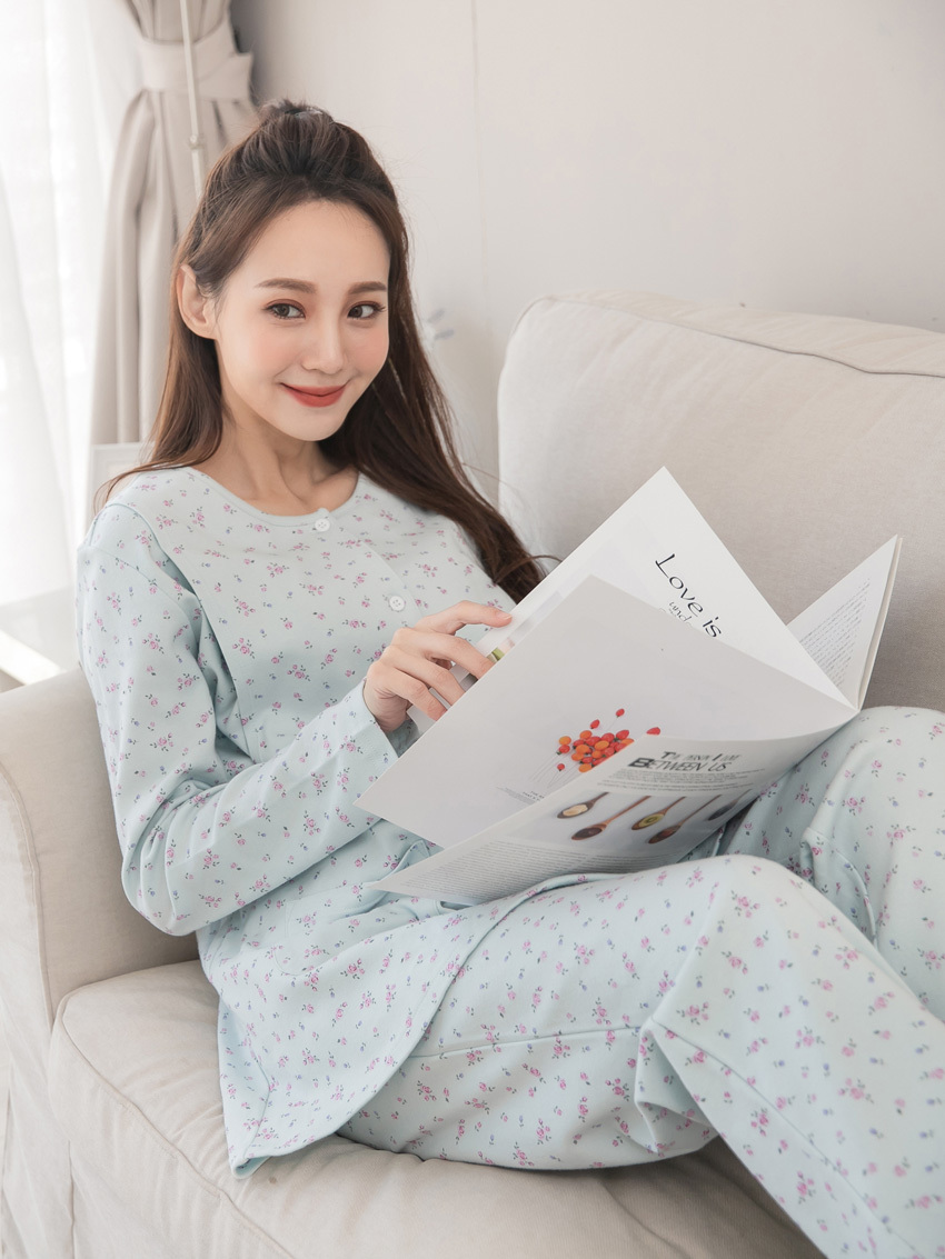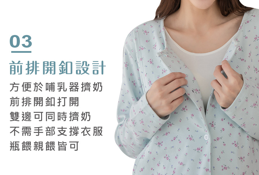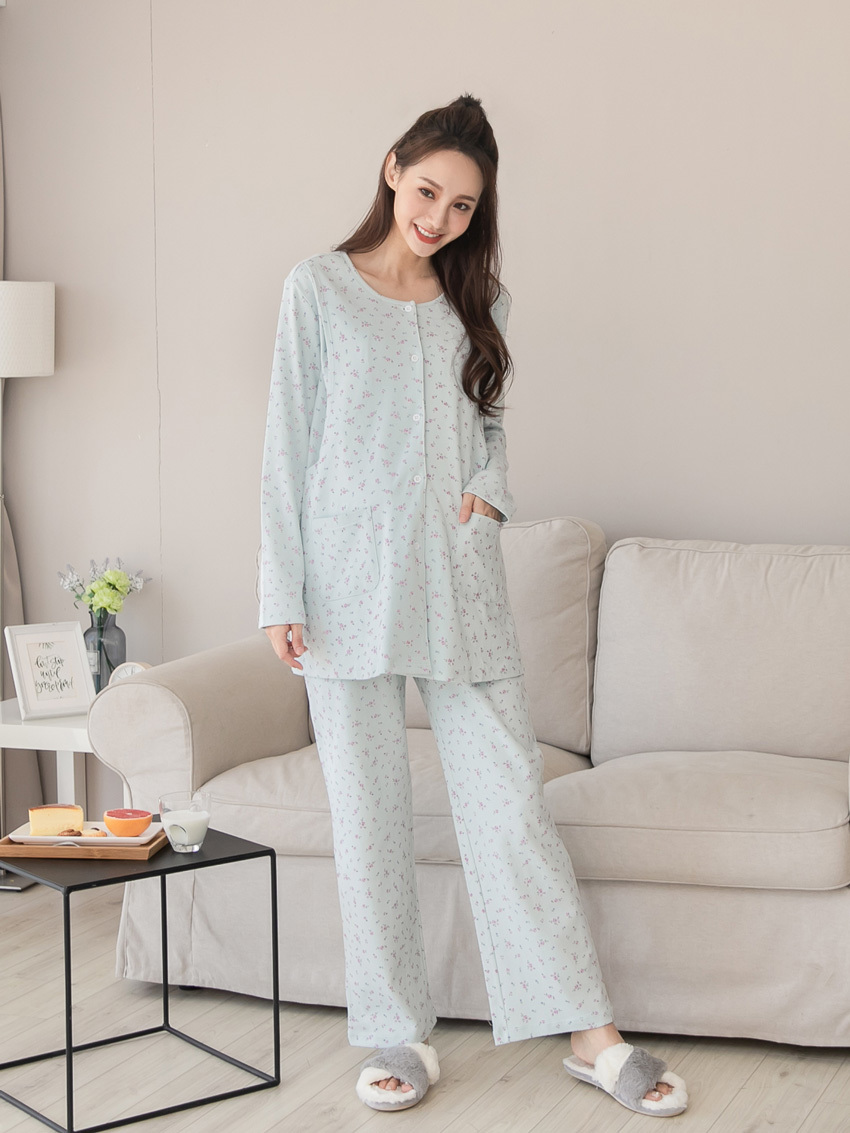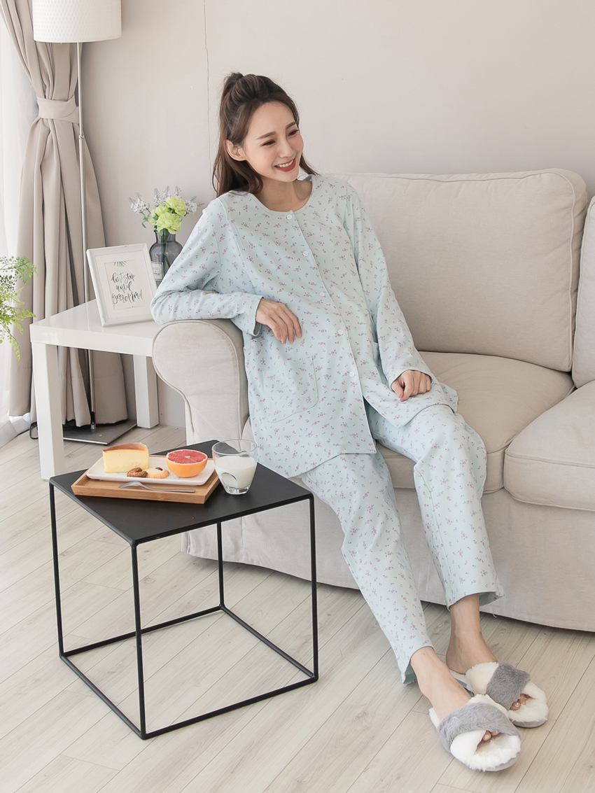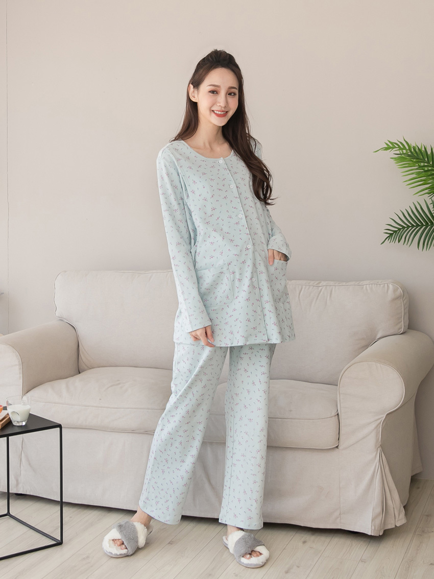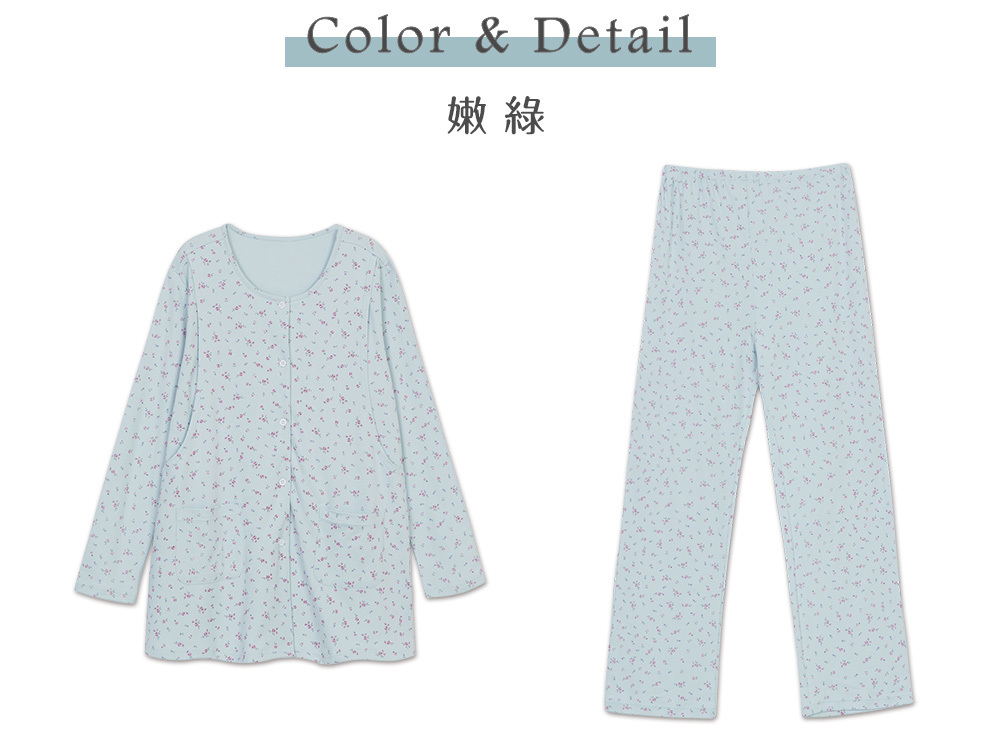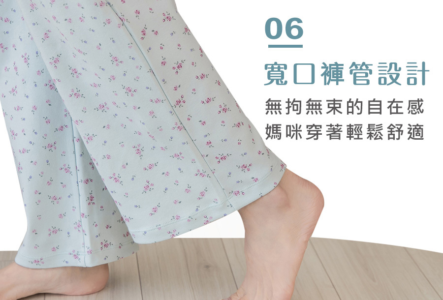 嫩綠-玫瑰花ㄦ型哺乳衣+寬口長褲(厚款)