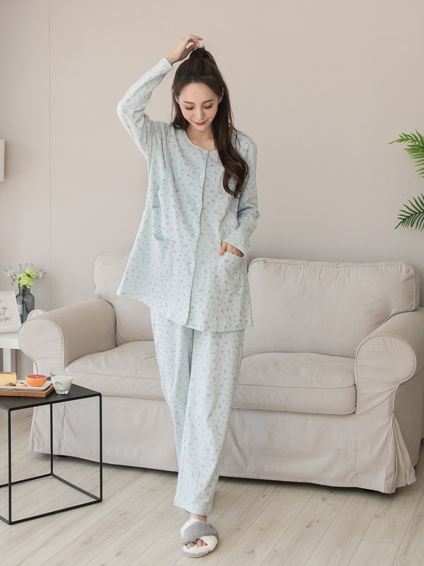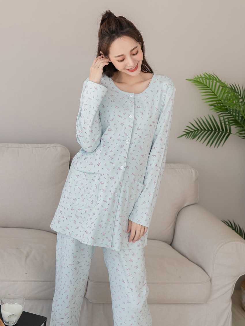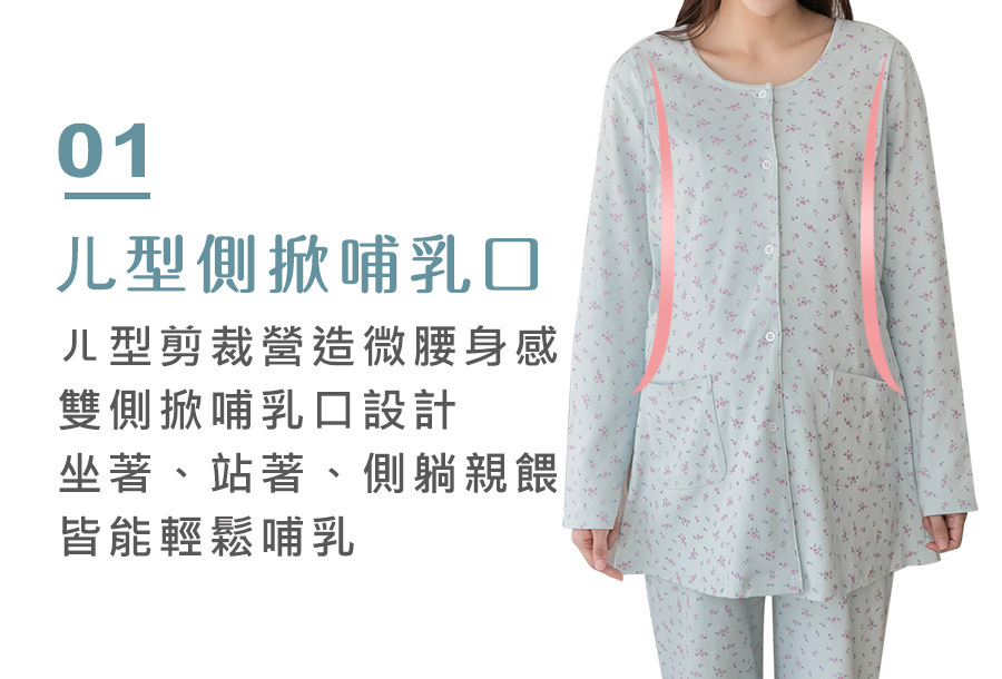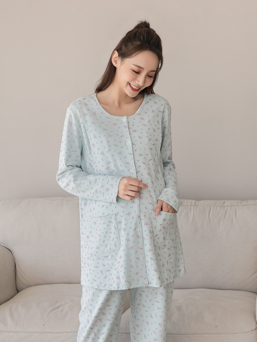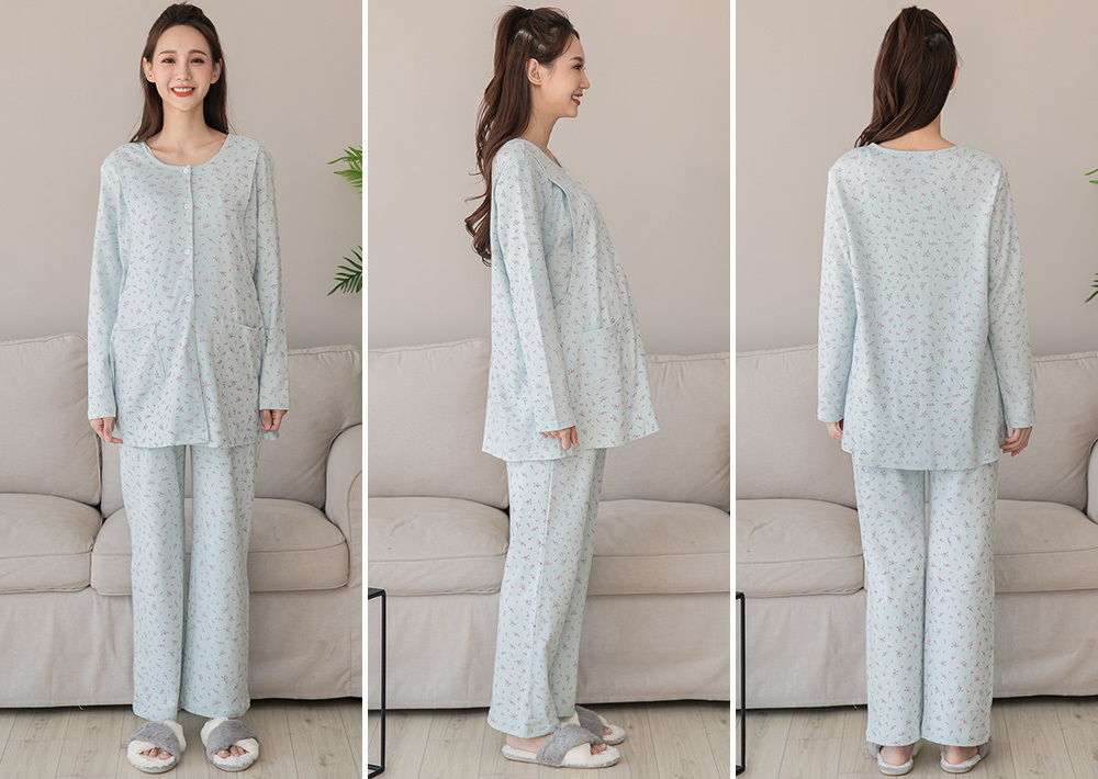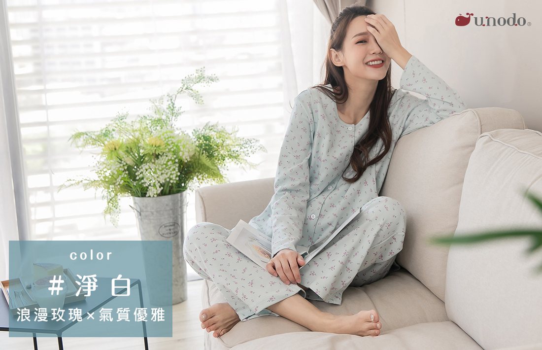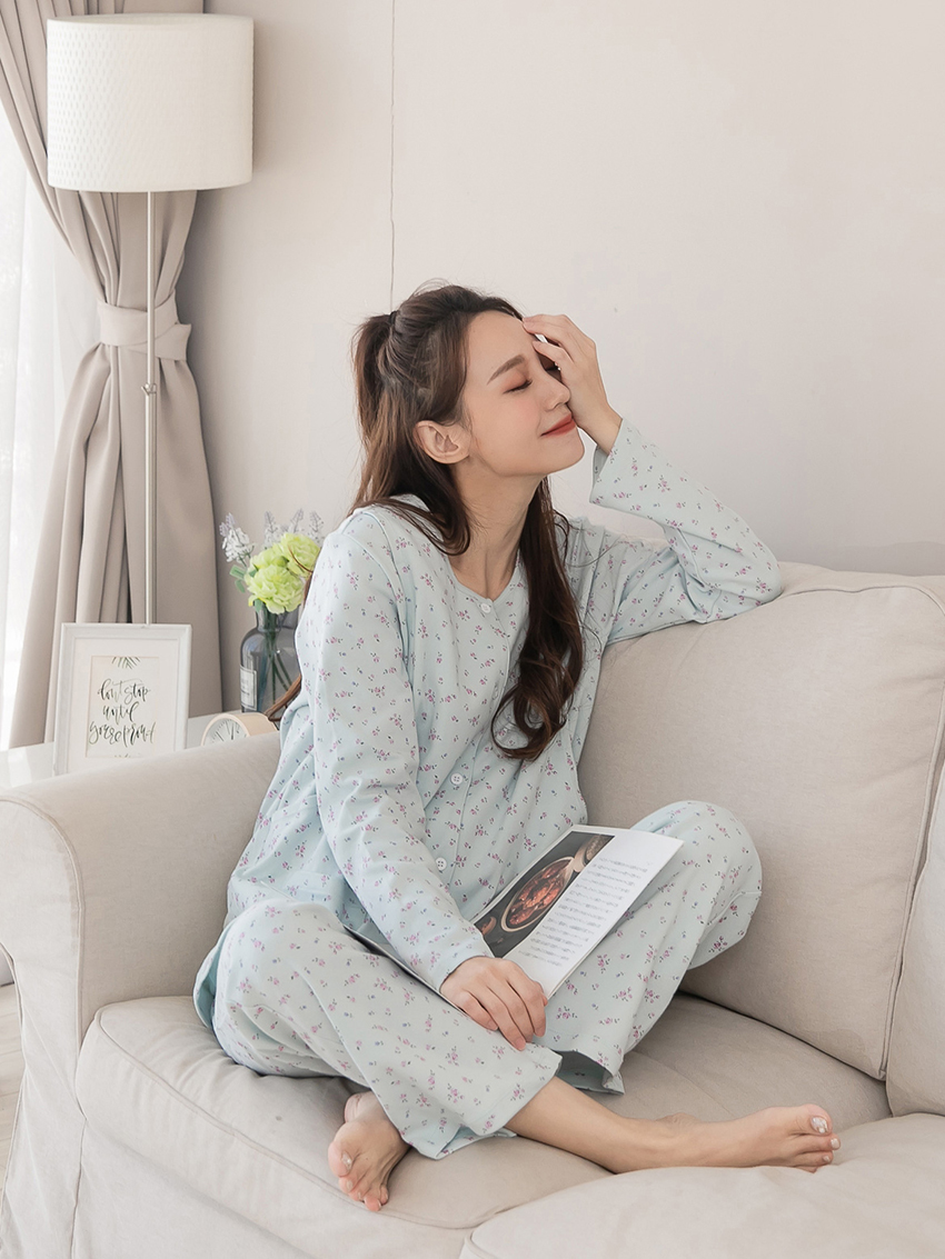 嫩綠-玫瑰花ㄦ型哺乳衣+寬口長褲(厚款)