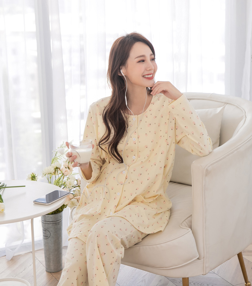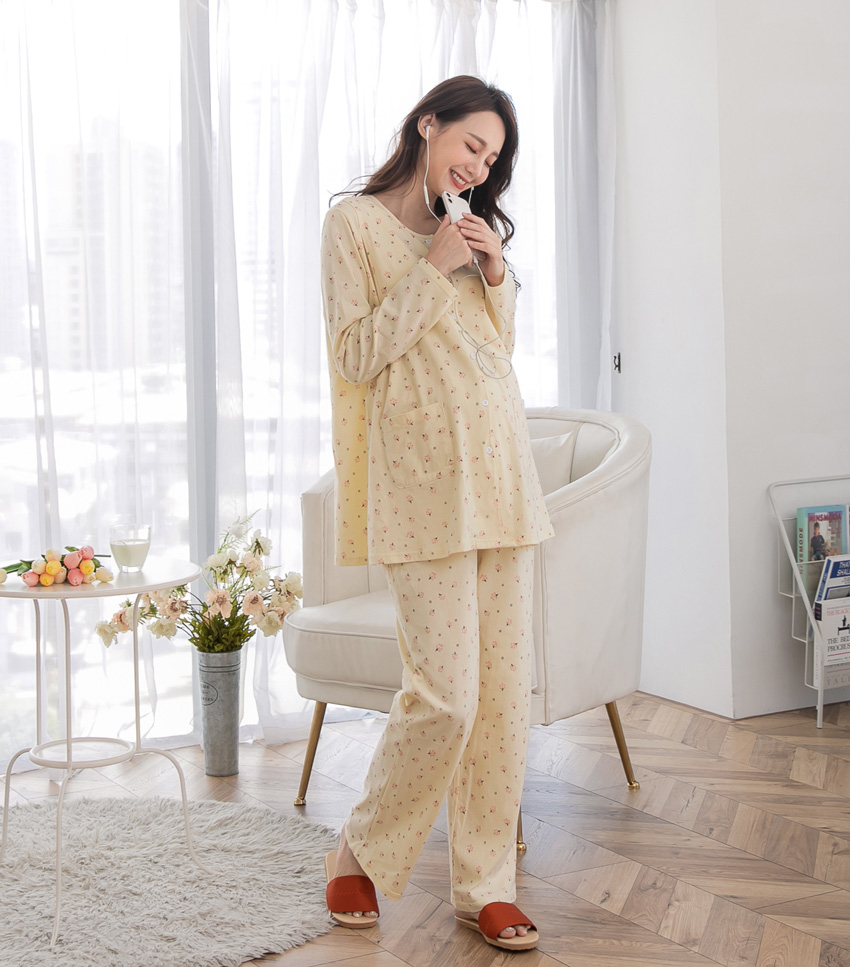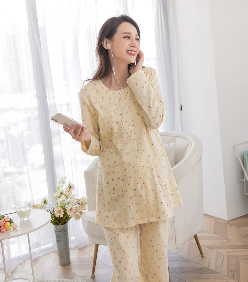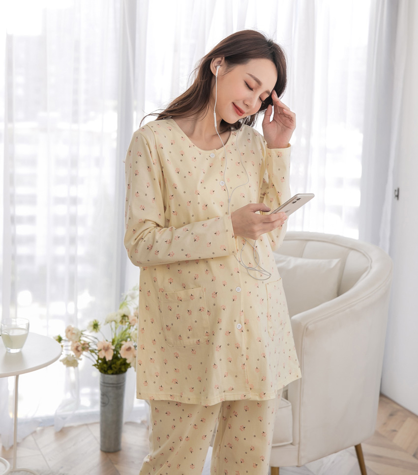溫馨黃-小樹ㄦ型哺乳衣+寬口長褲(薄款)